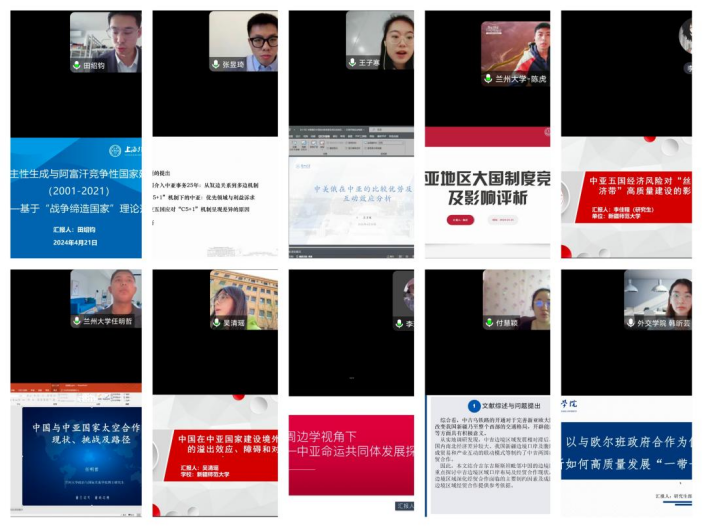 在“欧亚地区竞合关系”分论坛,田绍钧、张昱琦、王子寒、陈虎、李佳程、任明哲、吴清瑶、李瑞琳、付慧颖、韩昕芸等同学以“自主性生成与阿富汗竞争性国家建设(2001-2021)——基于‘战争缔造国家’理论范式”、“中亚视角下的美国中亚战略——以‘C5+1’机制为例”、“中美俄在中亚的比较优势及其互动效应分析”、“中亚地区大国制度竞争及影响评析”、“中亚五国经济风险对“丝绸之路经济带”高质量建设的影响研究”、“中国与中亚国家太空合作:现状、挑战及路径”、“中国在中亚国家建设境外经贸园区的溢出效应、障碍和对策研究”、“中国周边学视角下中国—中亚命运共同体发展探析”、“‘一带一路’视域下中吉边境区域经贸合作制约因素及对策研究”、“以与欧尔班政府合作为例探析如何高质量发展‘一带一路’”为题宣读了论文。西安外国语大学国际关系学院耶斯尔研究员、陕西师范大学中亚研究所陈东杰副研究员、博88(亚洲)唯一官方网站