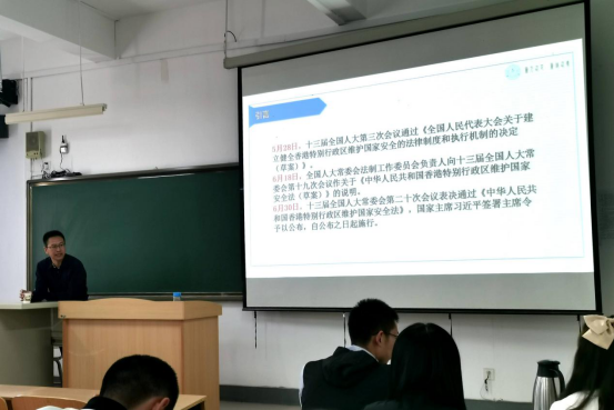 汪金国院长作了题为“《中华人民共和国香港特别行政区维护国家安全法》解读——从2014年乌克兰动荡和2019年香港动乱说起”的专题讲座。本次讲座,汪金国院长主要分四个部分展开阐述。第一部分是关于《国安法》的出台问题。在该部分,汪院长主要讲述《国安法》的制订历程、《国安法》制定过程中所遭受的破坏、《国安法》的内容以及其出台意义。其中,他着重强调《国安法》一些重要规定及其意义。第二部分,汪院长主要讨论香港问题。通过对香港问题来龙去脉的分析,探究香港问题的实质。第三部分,汪院长对乌克兰动荡问题进行阐述。他指出,通过对乌克兰的地理位置、资源状况、科技发展、经济情况以及该国总统面对动荡的应对程度的分析,并将乌克兰动荡与香港问题进行对比研究,不难发现,中国政府在香港问题上的解决方案比较及时和彻底,而乌克兰政府在处理动荡时明显乱了阵脚。这一方面说明一国领导人的定力在危机时刻的关键性,另一方面说明香港问题与乌克兰动荡问题在本质上是截然不同的。第四部分,基于对上述问题的观察与分析,汪院长指出,不论是香港问题还是乌克兰动荡问题,其作为一个事件的发生,必然有其价值与意义。其对政府今后治理与发展存在一定的警示作用,要从中总结历史经验。最后,汪院长对本次讲座进行总结。