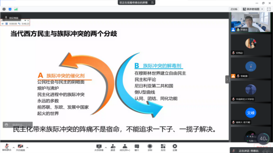 的支持。佟老师对于西方民主与族际冲突丰富而细致的讲解,有助于师生们把握文化间民主、系统性种族歧视等概念,增进对当代西方民主与族际冲突分歧研究现状的了解,进一步提升学术研究能力。