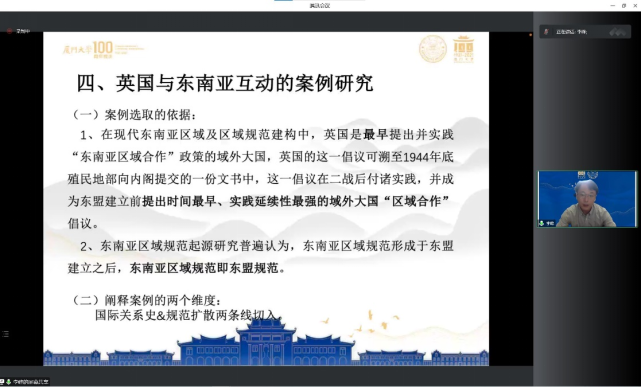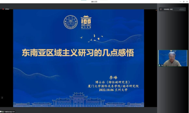、兰州大学中亚研究所邀请,厦门大学国际关系学院/南洋研究院博士后(特任副研究员)李峰为我校师生做题为《东南亚区域主义研习的几点感悟》的线上学术讲座。此次讲座由博88亚洲