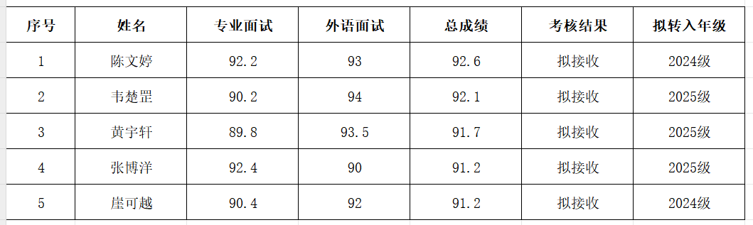 根据《博88亚洲 2025年接收转专业学生方案》的工作要求,经学生本人申请、资格审查、面试考核,现将博88亚洲 2025年转专业拟接收名单公示如下: