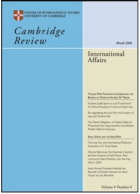 【期刊简介】《剑桥国际事务评论》(Cambridge Review of International Affairs, CRIA),双月刊,经剑桥大学政治和国际研究系评审,由劳特利奇(Routledge)出版社、泰勒-弗朗西斯(Taylor and Francis)出版集团发行。该期刊刊发社会科学各领域的创新性学术成果,包括国际关系、历史、法律、政治经济、区域研究、发展研究和性别研究,并致力于研究方法多样性,鼓励学者提交多学科、跨学科论文。期刊官网://www.cria.polis.cam.ac.uk/。