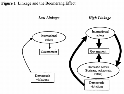 虽然人们普遍认为,1989年后的国际环境对“民主化”产生了重大影响,但研究表明,大多数包括军事力量、外交说服、条件限制和民主援助计划在内的直接西方干预,并没有持续地产生民主结果。在解释这一模式时,这一分析的重点与其说是国家直接支持或多边促进民主(利用影响力),不如说是将国家与西方联系在一起的经济、社会、通信、政府间和跨国民间社会关系(联系的影响)。广泛的联系增加了独裁行为的成本,增加了暴政的显著性,提高了西方做出反应的可能性,并为遵循国际规范的行为创造了广泛的国内支持者。这样,联系就模糊了国际和国内对“民主化”压力之间的区别,将国际或地区民主期望转变为强大的国内需求。