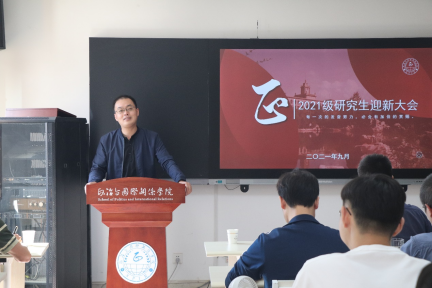 在大学生活动中心604室组织开展了2021级研究生迎新大会暨新生教育大会。党委书记姚志海、院长汪金国教授、副院长陈小鼎教授、副院长曾向红教授、王四海教授、朱永彪教授、周明教授、李益斌副教授、高婉妮副教授、陈一一副教授及全体2021级研究生参加了会议。此次会议由学院党委副书记贾海燕主持。