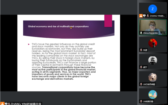 至此,本次讲座圆满结束。耶列娜研究员此次讲座令学院师生受益匪浅,讲座最后,耶列娜研究员与学生们就专业问题积极交流意见,并对此次线上讲座成功推进表示衷心地感谢,对学院发展表达诚挚的祝福。