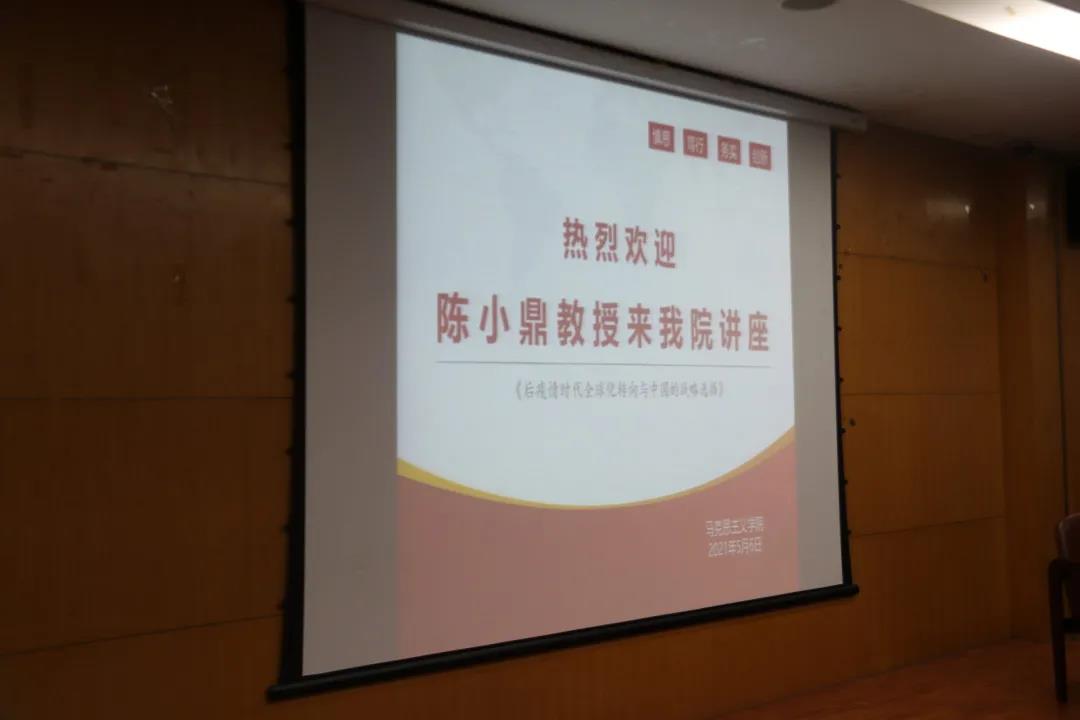 、兰州大学上海合作组织研究中心教授、博士生导师、副院长、飞天学者、萃英学者、甘肃省委宣讲团成员陈小鼎教授在南校学术报告厅开展了以“后疫情时代全球化转向与中国的战略选择”为主题的讲座。马克思主义学院学生及部分老师参加本次讲座,党总支书记任红霞老师主持。