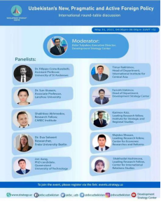 、兰州大学中亚研究所孙秀文副教授应邀参加“乌兹别克斯坦新型、务实和积极的对外政策”线上学术研讨会。本次国际会议由乌兹别克斯坦发展战略中心发起,并由国际经济和政治研究中心、总统战略与区域研究院、国际关系信息分析中心、中亚地区国际研究院等多家乌兹别克斯坦科研院所协办。来自乌兹别克斯坦、中国、英国、德国、澳大利亚的10余名代表在会议上围绕乌兹别克斯坦外交发表了观点并展开了讨论。