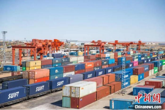 图为途径中蒙最大陆路口岸——二连浩特口岸的中欧班列。(图源:中新网)