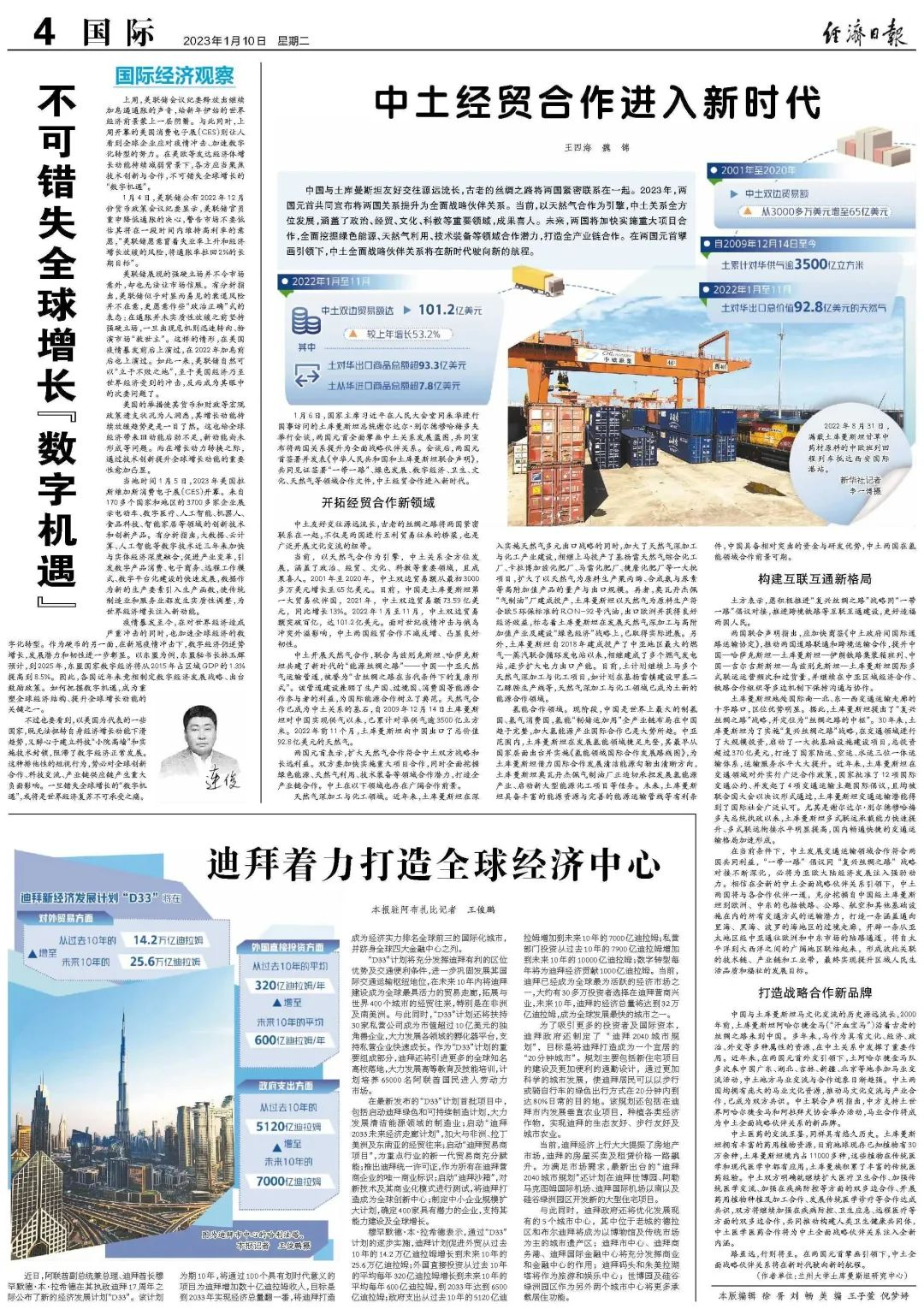 2023年1月10日,兰州大学土库曼斯坦研究中心主任王四海教授、助理研究员魏锦在《经济日报》发表题为“中土经贸合作进入新时代”主题文章,全文如下://proapi.jingjiribao.cn/readnews.html?id=279946