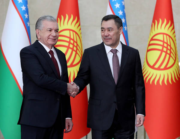 乌兹别克斯坦总统米尔济约耶夫和吉尔吉斯斯坦总统萨德尔·扎帕罗夫。图自视觉中国