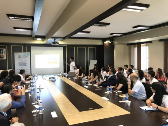 随后,交流团团长、兰州大学马克思主义学院副院长郭文琦通过“where”、“what”和“how”三方面,展开了一场别开生面的兰州大学现场招生会。他介绍说,兰州地处中国几何中心,是华夏文明发源地,拥有丰富的文化和旅游资源。兰大人本着“骆驼”精神,自1909年建校后砥砺前行,使兰州大学成为全球自然基金指数排名国际91的综合性重点高校,并跻身“双一流”建设高校之列。郭院长通过大量数据、照片和兰州大学2019年国际学生招生简章,展示了兰州大学的办学规模、学科设置、优势专业和校园风光。交流团还向兰州大学现有留学生数量、国家来源、土耳其生源学生数和为留学生提供的种类丰富的奖学金进行了介绍。博88亚洲