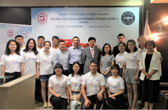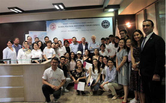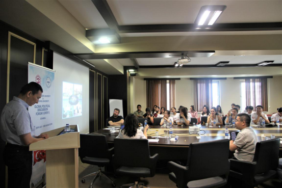 7月31日,“全球政治研讨论坛”(Global Political Discussion Forum, GPDF 1)在伊斯坦布尔-格迪克大学卡特尔校区举行,这也是兰州大学-格迪克大学暑期交流活动的核心内容。中国驻土耳其伊斯坦布尔总领事馆副总领事钟洪糯、领事杨蕴、复旦大学国际问题研究院副教授马斌、亚美尼亚中国-欧亚政治与战略研究委员会主任麦赫·萨哈扬(Mher Sahakyan)、伊斯坦布尔大学中文系系主任阿尤布·撒勒塔史(EyupSaritas)教授、土中文化协会副会长穆斯塔法·卡斯勒(Mustafa karsli)、格迪克大学市政工程系助理教授默特·托伦(Mert Tolon)、国际关系系主任苏哈·阿塔图尔教授和多名教师以及交流团全体成员参加论坛。