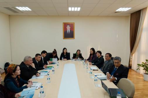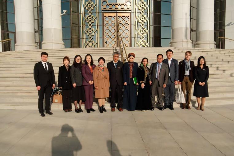 代表团与土库曼斯坦外交部国际关系学院开展座谈,就两校校际合作、学生培养工作等事宜进行磋商。