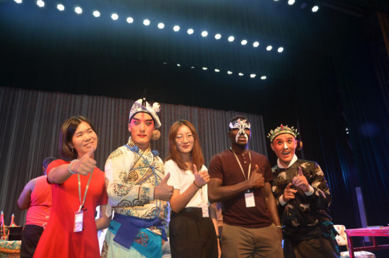 8月2-8日期间,美国青年游学团在兰州展开了丰富多彩的学习交流活动。在学习方面,游学团成员与中国师生共同聆听了包括丝路之路文化发展、中美关系四十年等主题的多场学术讲座,参观了甘肃省博物馆和黄河第一桥“中山桥”。在体验环节,游学团成员亲自上阵,随拉面技师学习兰州牛肉面的制作技艺;感受由甘肃省工艺美术大师、联合国教科文组织认定的“民间工艺美术家”叶长友手把手教授陇派剪纸艺术;在甘肃秦腔艺术剧院勾脸上妆,学习甘肃传统戏剧秦腔的唱念坐打;跟兰州大学体育教研部教师一起跳起藏族传统的锅庄舞;在专业画师的指导下调色描线,画出一幅幅色彩斑斓的唐卡。通过这些学习、参观和体验活动,美国游学团师生全方位感受了丝绸之路文化的博大精深,也惊叹于中国西北独特的文化风貌。