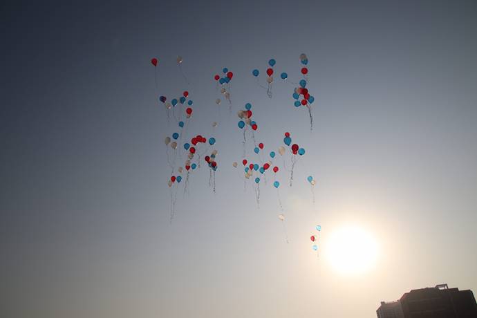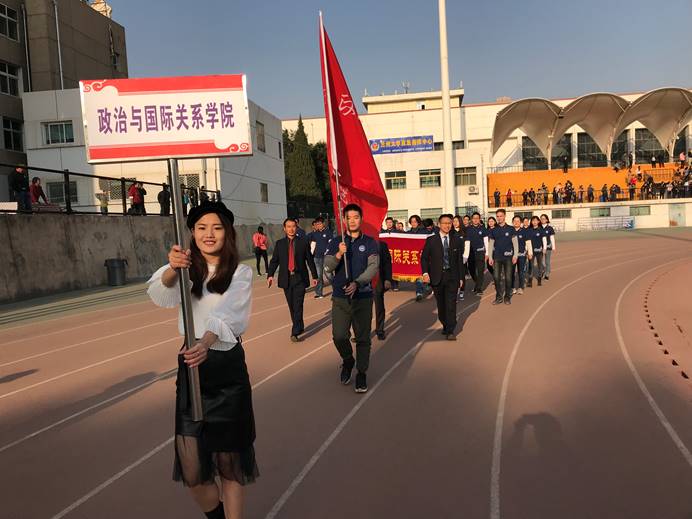 在开幕式开始后,博88亚洲 方阵在全场注目中入场。随着运动进行曲的铿锵节奏,党委书记姚志海、院长汪金国、副书记贾海燕、副院长曾向红带领队列迈着整齐划一的步伐走向主席台。同学们舞动着彩色的气球,齐声喊出“为人以正,为政以德,大成政国,公行天下”院训。在看台观众的欢呼声中,同学们放飞气球,蔚蓝天空顿时一片绚丽。