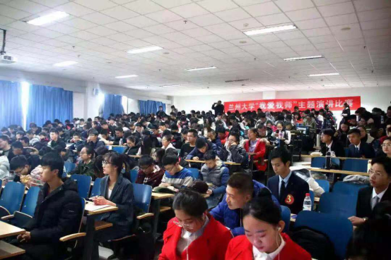 11月24日上午, “我爱我师”主题演讲比赛在天山堂C203顺利举行。兰州大学学生处就业指导中心杨仁子老师、榆中校区管委会办公室杨婷老师、兰州大学学生会主席彭虹九、校团委基层团建指导中心学生部长应锦川、萃英在线站长李德川、大学生艺术团主持人队队长孙琳担任此次比赛的评委,本次演讲共有25名学生参赛。