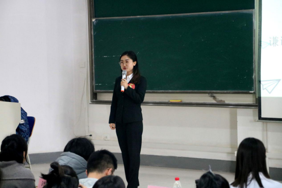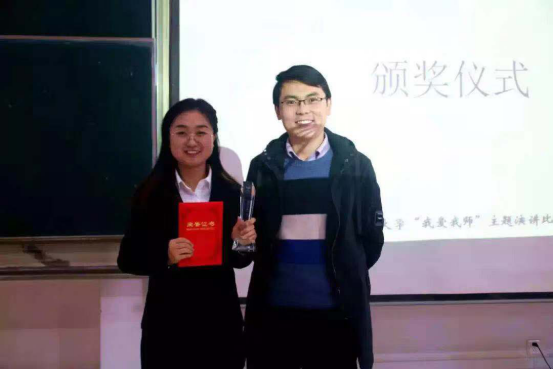 的李兴同学是第5号选手,她的演讲是《谦谦君子,良师益友——政国院陈小鼎老师》。李兴向听众们介绍了谦谦君子、严谨治学的陈小鼎教授,讲述了老师平日里对同学们的教诲,还表达了对陈小鼎老师的喜爱与敬佩和对学院的热爱之情。她独具特色的个人魅力,感情真挚的语言表达,以及文辞优美的叙述不断引起观众的强烈共鸣与阵阵掌声。