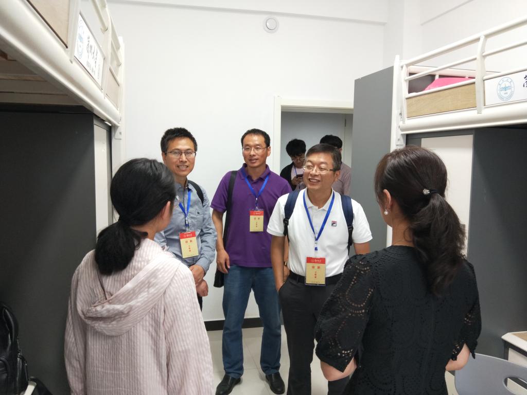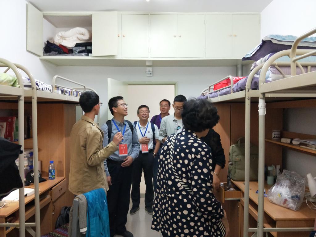 党委书记姚志海,院长汪金国,党委副书记贾海燕和辅导员雷环瑞等人走入新生寝室,慰问刚入学的新生。