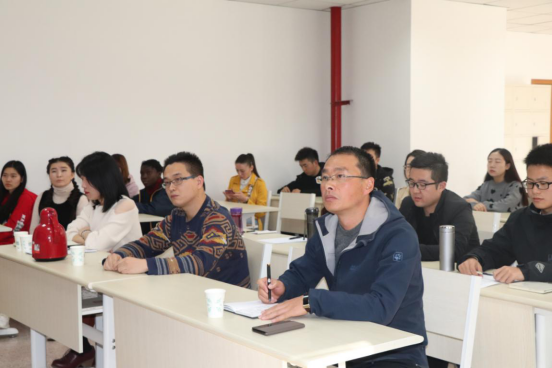党委副书记贾海燕、研究生辅导员姜潭老师、上届研究生会主席团成员、新任主席团成员以及2019级全体研究生参加了此次会议,会议由新任研究生会主席别志媛主持。