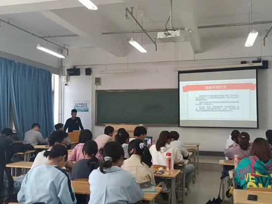 各班结合实际,开展了以法制教育宣传为主题的班会,同时也利用更灵活便捷的线上宣传方式,为同学们推送法制相关内容的文章及短视频,如2020级行政班宣传委员在班级群分享了多个有关法制宣传的视频,重点宣传了宪法、我国法制建设与共筑中国梦的重要意义,同学们在班长符闻超的带领下对该系列的法制视频积极宣传学习。同时,学院也通过家校联系群,向家长推送法律知识和科学教育方法,建立法制教育网络,通过家校联动营造良好的法治氛围。