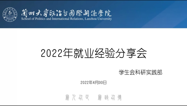 举行2022年线上就业经验分享会,此次分享会邀请到16级国际政治专业的苏瑞洁和18级国际政治专业的颜玥,为同学们进行就业相关方面的经验分享。