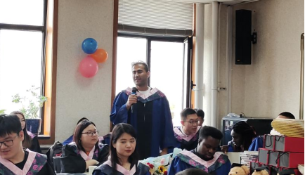学院副院长陈小鼎随后为毕业生们寄以毕业心语。陈院长讲到,看到我们现在齐聚一堂,共襄盛举,与你们在学院生活的点点滴滴浮上心头,都给我种下了深刻的回忆。你们本科毕业生是我们学院独立建院以来的第一批毕业生,如今能够顺利毕业,足以证明我们学院人才培育工作的成功。最后,陈副院长希望毕业生们积极有为,志存高远,会当凌绝顶,一览众山小,千帆终入海,盼归来,仍是少年!