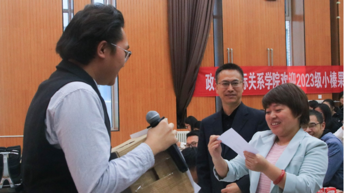 大会第一项,全体起立,奏唱国歌。庄严的国歌唱毕后,常虹书记代表学院党委宣读聘任2023级班主任、学生副班主任的通知并颁发聘书,学院在本学年决定聘任李泽博士担任2023级政治学类一班班主任,刘倩博士担任2023级政治学类二班班主任,2021级国际政治班杨婷担任2023级政治学类一班副班主任,2021级政治学与行政学班李伟杰担任2023级政治学类二班副班主任。