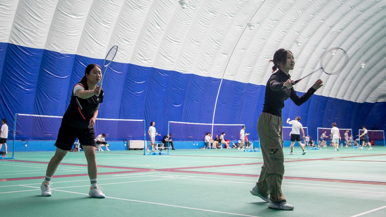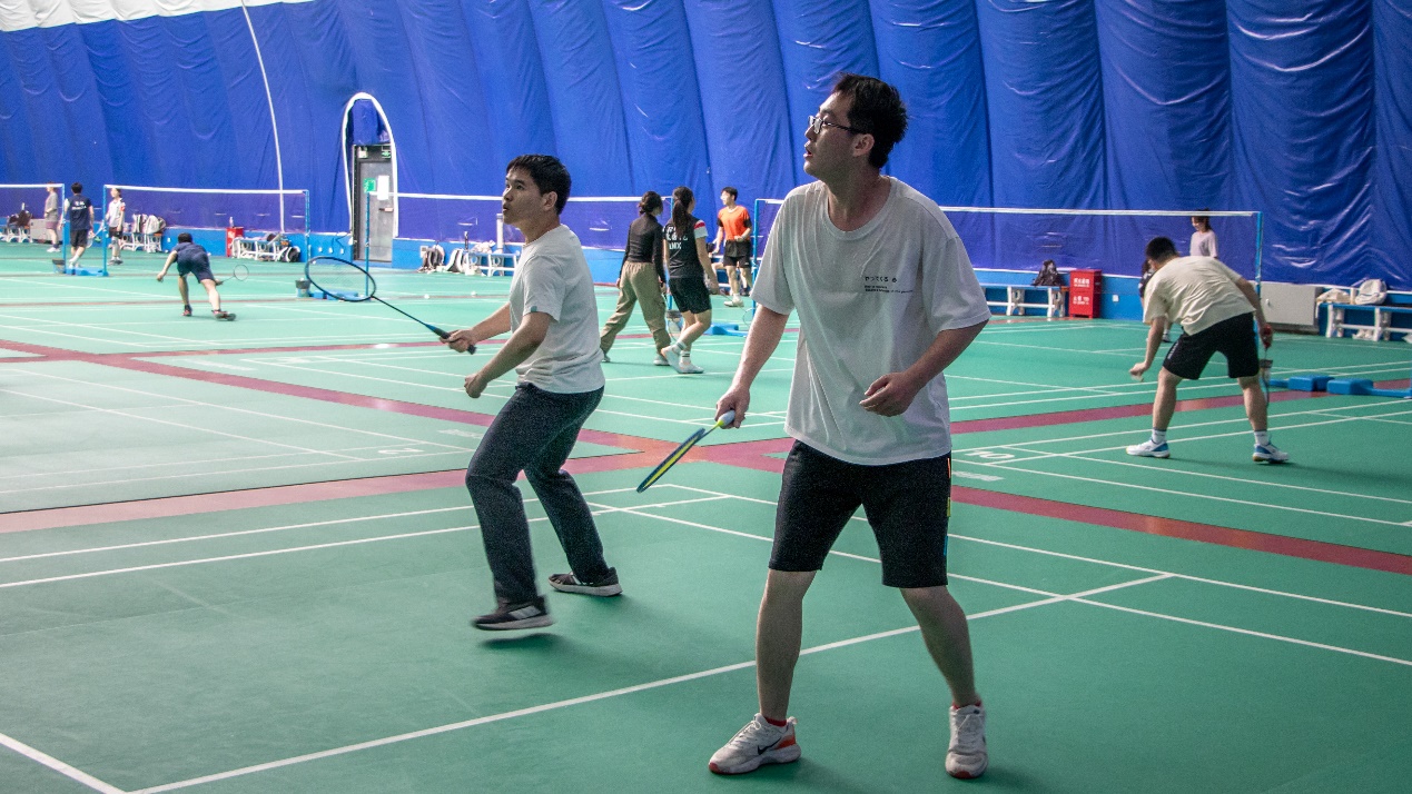 在活动正式开始之前,张书记和在场同学们热切交谈,关心了解同学们的近况。短暂的寒暄后,老师和学生们纷纷开始热身活动。他们或是在场边压腿拉伸,充分唤醒身体,快速进入到运动状态;或是在场上练习击球、接球等羽毛球的基础动作,使每一次挥拍都准确无误。