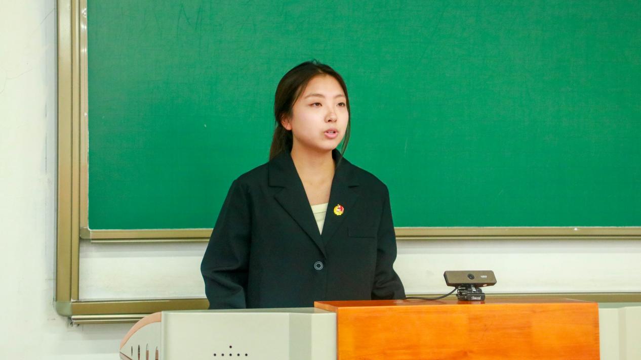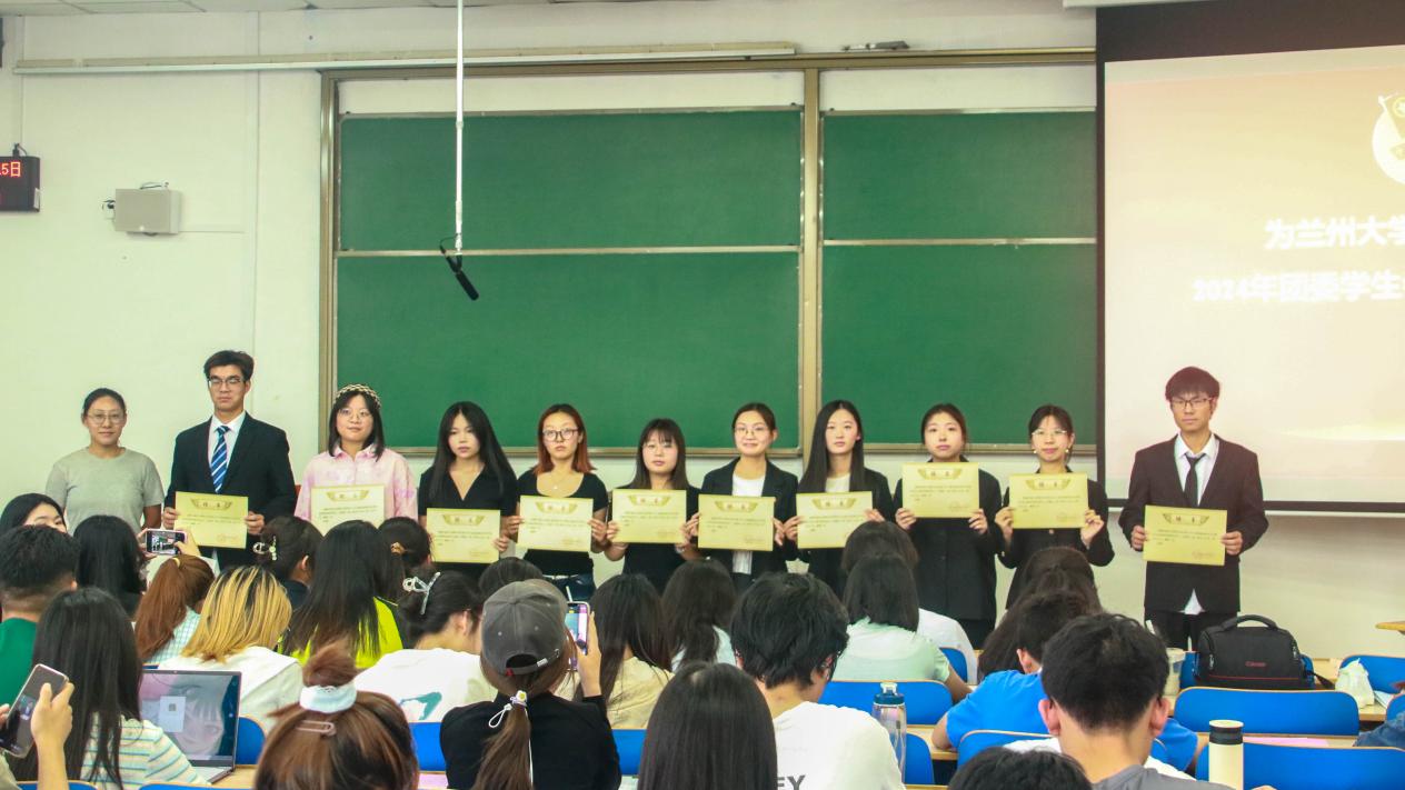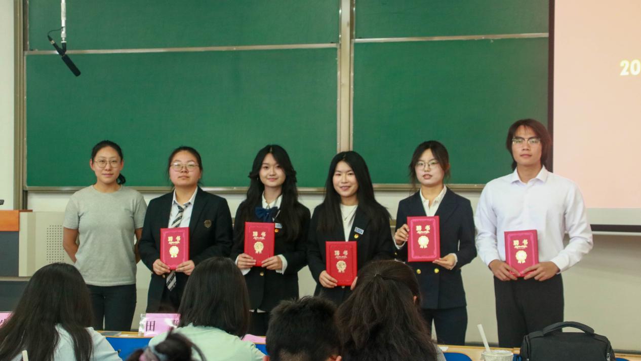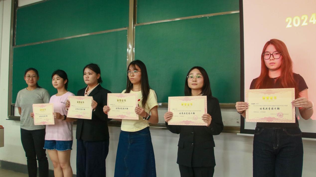 学院团委副书记田歌为2024 - 2025学年获得“五四”评优表彰的同学以及团委各部门负责人颁发荣誉证书与聘书,充分肯定其过去一年的辛勤付出,鼓励他们在未来工作中勇挑重担、发挥示范作用。