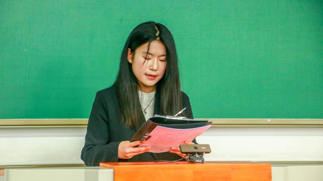 学生团委副书记候选人龙文萱、谢佳彤依次发表竞选陈述。两人紧扣团学工作核心,围绕思想引领、组织建设和实践拓展等维度,提出一系列务实且具创新性的工作设想。她们计划打破传统模式,运用新媒体手段增强思想教育吸引力;优化团委运行机制,提升组织运转效率;策划更多贴合专业特色与青年需求的实践活动,全方位提升团员青年综合素质,展现出对团委工作的深度思考与积极进取的精神风貌。