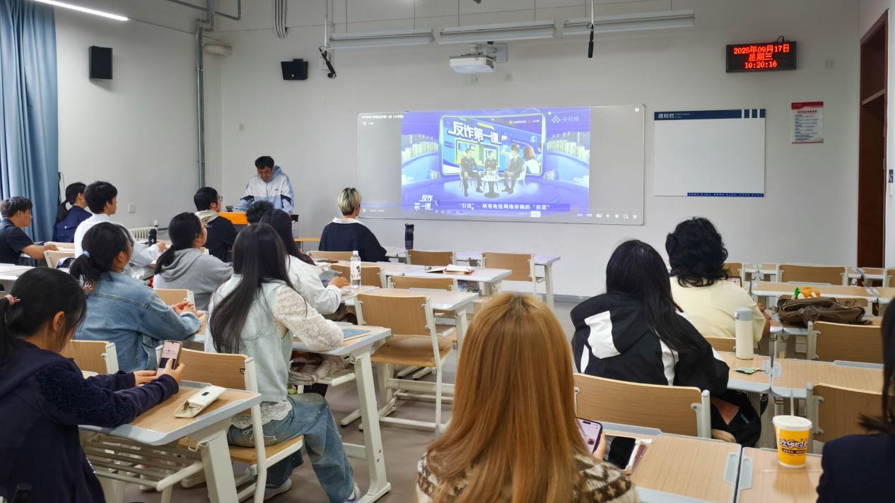 学院组织同学们在线观看2025年秋季学期"大中小学生反诈大讲堂"直播。本次直播由公安部刑侦局联合央视频共同呈现,特邀一线反诈民警结合近年高发的"AI换脸诈骗""游戏账号交易陷阱""虚假兼职信息"等典型案例进行深度剖析。直播中,民警通过情景再现、数据解读、防范技巧传授三重维度展开教学,同学们全程全神贯注,认真记录笔记,并在互动环节通过弹幕积极提问,受益良多,显著提升反诈防骗水平。