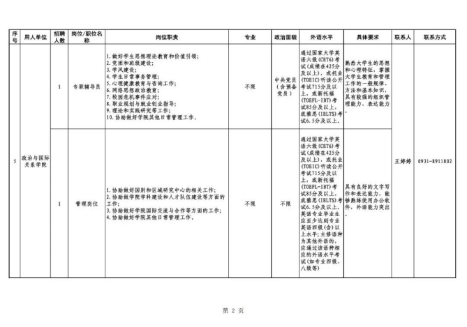 此次公开招聘的岗位范围为:实验技术、管理及辅导员岗位,招聘岗位和具体要求详见《兰州大学2019年招聘岗位一览表》。