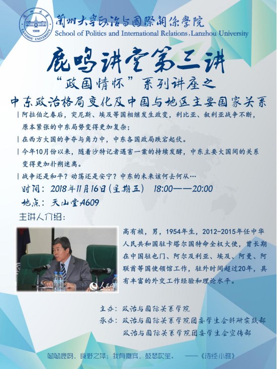 应博88亚洲 邀请,中华人民共和国前驻卡塔尔国特命全权大使高有祯将于2018年11月16日来博88亚洲 进行学术交流并作讲座,欢迎广大师生届时参加。