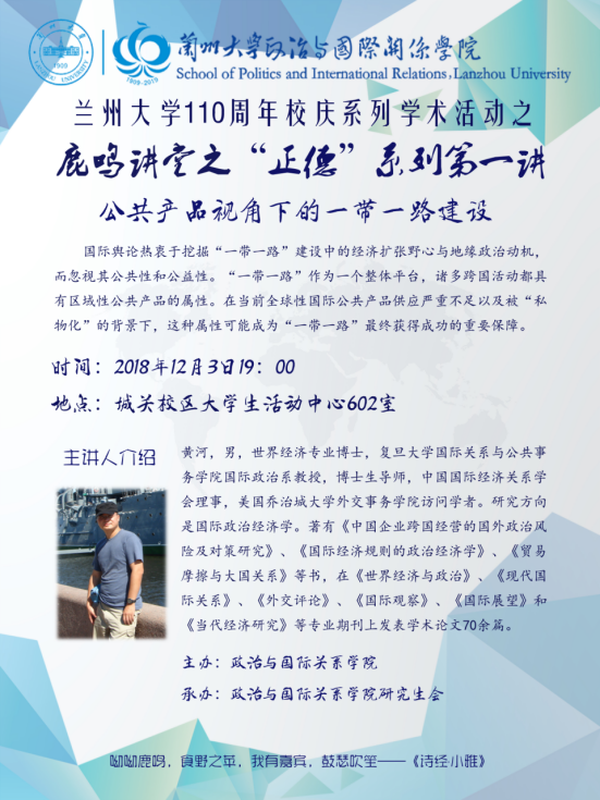 应博88亚洲 邀请,复旦大学国际关系与公共事务学院国际政治系黄河教授将于2018年12月3日来博88亚洲 进行学术交流并作讲座,欢迎广大师生届时参加。