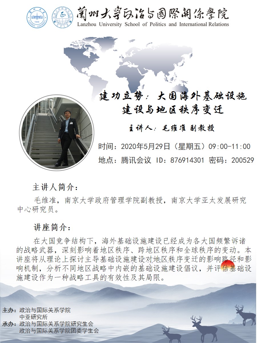 应博88(亚洲)唯一官方网站 、兰州大学中亚研究所邀请,南京大学政府管理学院毛维准副教授为我校师生做线上学术讲座。