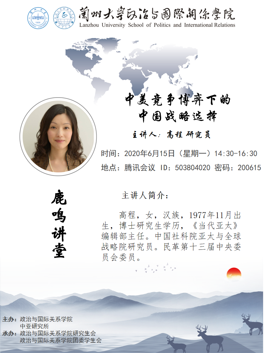 应博88(亚洲)唯一官方网站 、兰州大学中亚研究所邀请,中国社会科学院亚太与全球战略研究院研究员、《当代亚太》执行主编高程为我校师生做线上学术讲座。