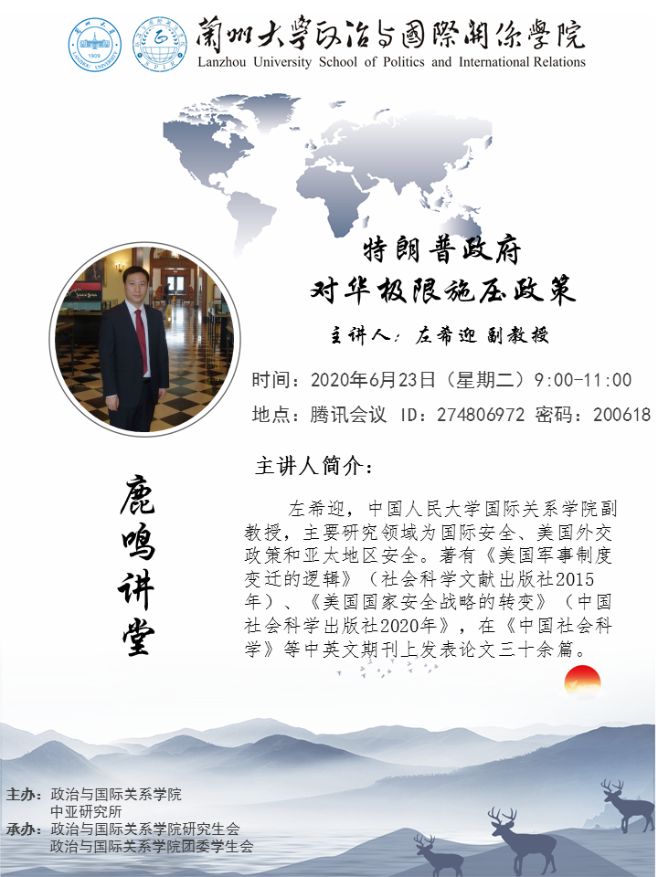 应博88(亚洲)唯一官方网站 、兰州大学中亚研究所邀请,中国人民大学国际关系学院左希迎副教授为我校师生做线上学术讲座。