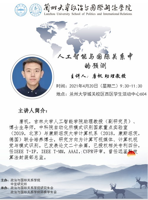 应博88(亚洲)唯一官方网站 、兰州大学中亚研究所邀请,吉林大学人工智能学院助理教授(副研究员)唐帆为我校师生做学术讲座。届时欢迎广大师生参加!