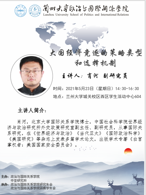 应博88(亚洲)唯一官方网站 、兰州大学中亚研究所邀请,中国社会科学院世界经济与政治研究所国际战略研究室副主任,《世界经济与政治》编辑部副研究员肖河为我校师生做学术讲座。欢迎广大师生届时参加!