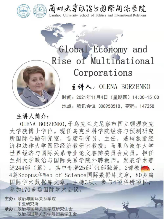 应博88(亚洲)唯一官方网站 、兰州大学中亚研究所邀请,乌克兰科学院经济与预测研究所研究员耶列那·波尔申科为我校师生做学术讲座。欢迎广大师生届时参加。