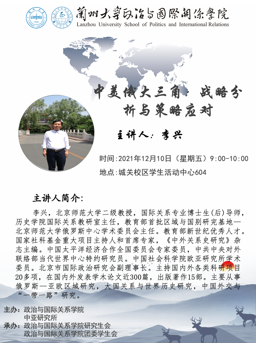 应博88(亚洲)唯一官方网站 、兰州大学中亚研究所邀请,北京师范大学二级教授李兴为我校师生做学术讲座。欢迎广大师生届时参加!