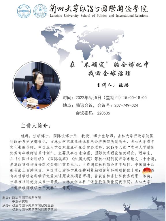 应博88(亚洲)唯一官方网站 、兰州大学中亚研究所邀请,吉林大学行政学院教授、博士生导师姚璐为我校师生做学术讲座。欢迎广大师生届时参加!