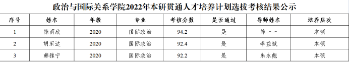 根据《兰州大学本研贯通人才培养计划实施办法》《博88亚洲 本研贯通人才培养计划实施细则(试行)》和《博88亚洲 2022年本研贯通人才培养计划选拔通知》的工作要求,经学生本人申请、资格审核和面试考核,现将博88亚洲 2022年本研贯通人才培养计划选拔入围名单公示如下: