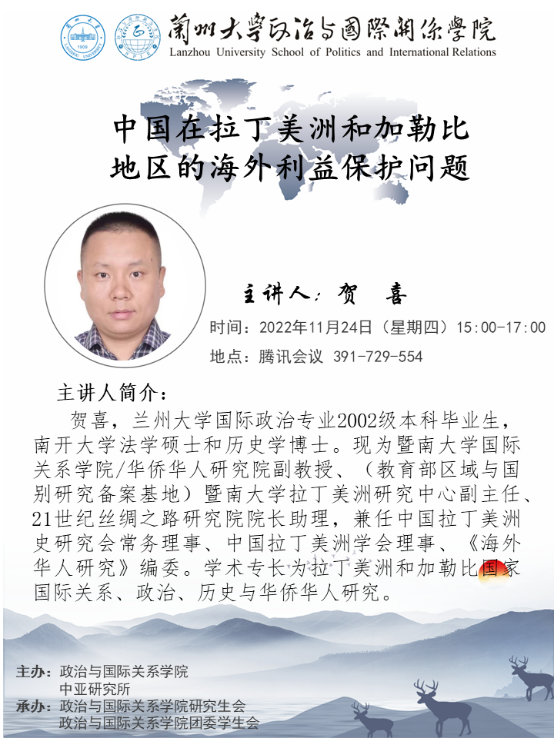 应博88(亚洲)唯一官方网站 、兰州大学中亚研究所邀请,暨南大学国际关系学院贺喜副教授为我校师生做学术讲座。欢迎广大师生届时参加!