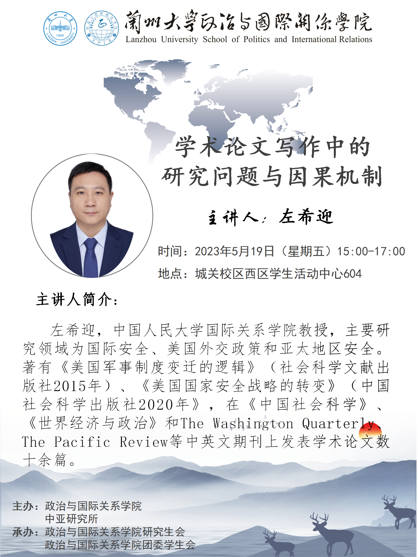 应博88(亚洲)唯一官方网站 、兰州大学中亚研究所邀请,中国人民大学国际关系学院教授左希迎为我校师生做讲座。欢迎广大师生届时参加!