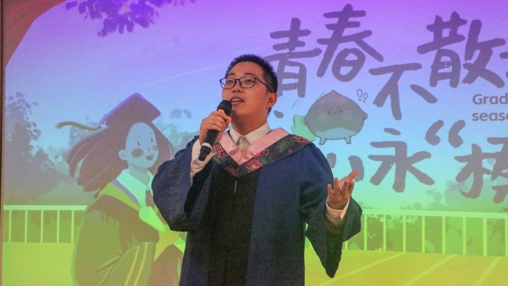 随后,博士生学生代表杨忞和本科生学生代表田磊分别进行发言。杨忞同学回顾了自己本科以来的求学历程,深情地倾诉自己的十载求学路、一生兰大情,梦寐以求的学术氛围、仰慕已久的学术前辈都让她难以忘怀,最后她祝愿同学们无论处于何种境遇都要永葆一种平静的力量。田磊同学则以“为政以德,譬如北辰,居其所而众星拱之”开篇,指出作为一名政国学子,我们不仅要以德化行,用德行来约束自己,更要有对世界的真实关切,仰望星空、脚踏实地,为实现理想而不懈奋斗。