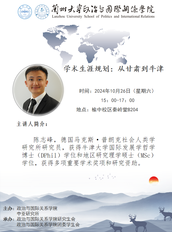 应博88(亚洲)唯一官方网站 、兰州大学中亚研究所邀请,德国马克斯·普朗克社会人类学研究所研究员陈志峰为我校师生做讲座。欢迎广大师生届时参加!