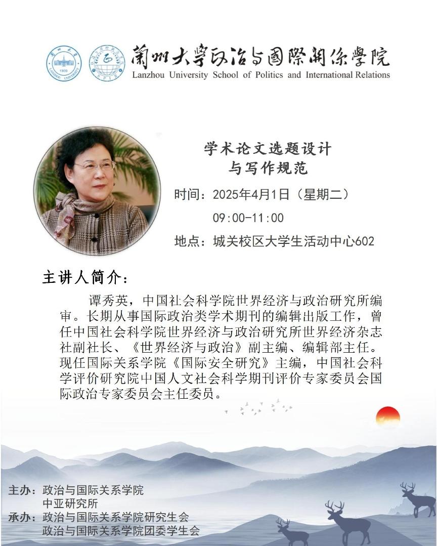 应博88(亚洲)唯一官方网站 、兰州大学中亚研究所邀请,中国社会科学院世界经济与政治研究所编审谭秀英为我校师生做讲座,欢迎广大师生届时参加。