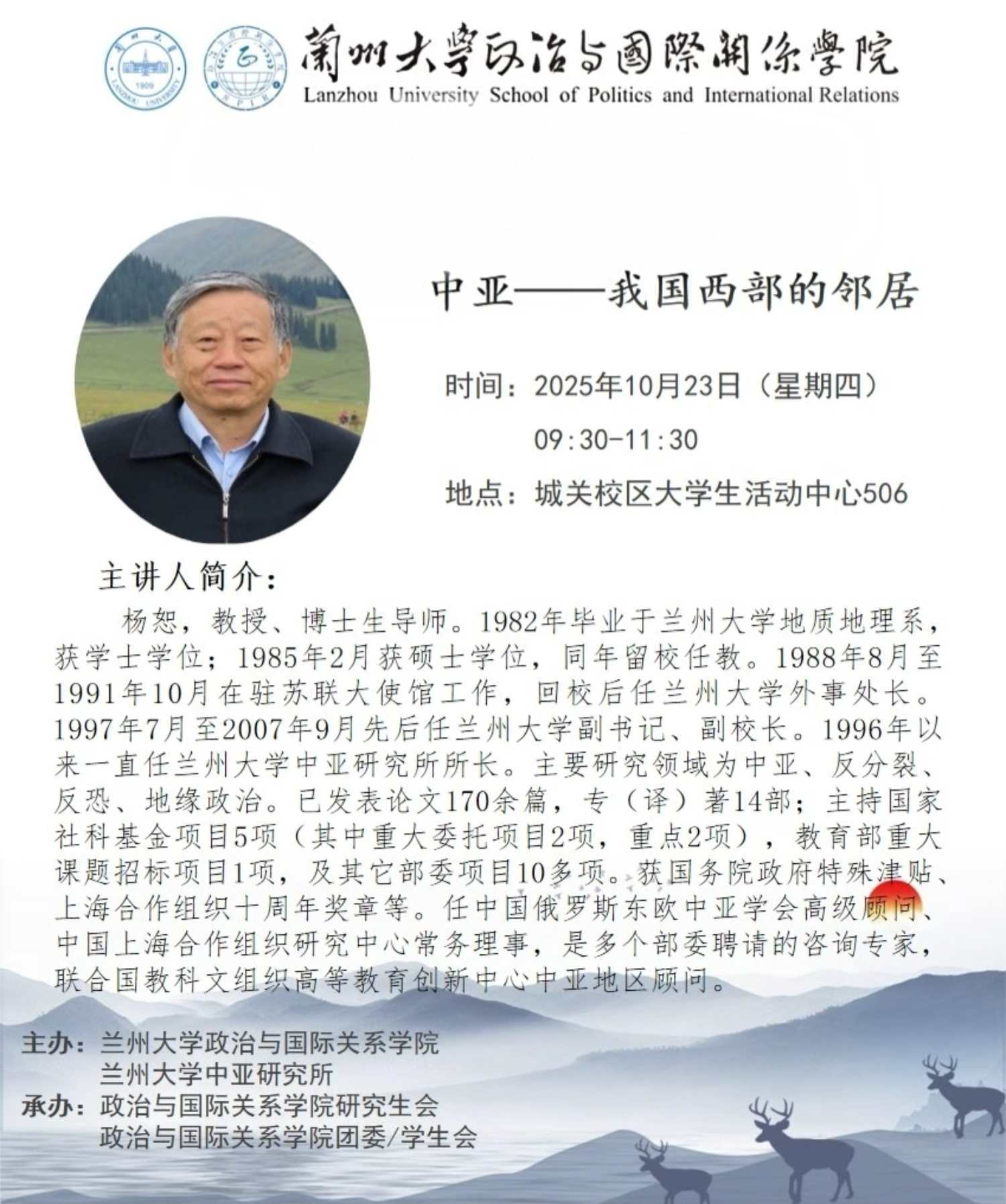 兰州大学中亚研究所所长杨恕教授为我校教师做讲座,欢迎各位教师届时参加。
