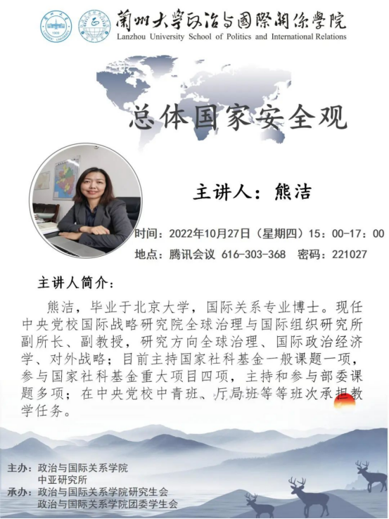 At the invitation of the School of Politics and International Relations of Lanzhou University and the Institute for Central Asian Studies of Lanzhou University, Associate Professor Xiong Jie from the Party School of the Central Committee of C.P.C.will give an academic lecture to our students and teachers. All the teachers and students are welcome to attend.